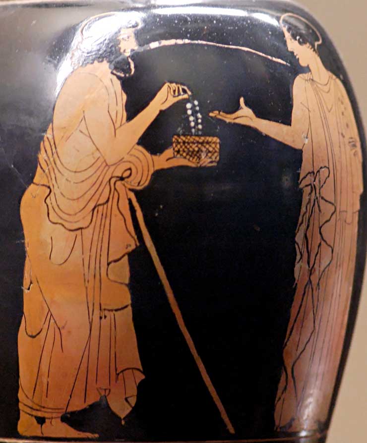 Pelasgo se interesa por su petición de asilo pero ha de sopesar la posibilidad de entrar en guerra con Egipto por proteger a las suplicantes.